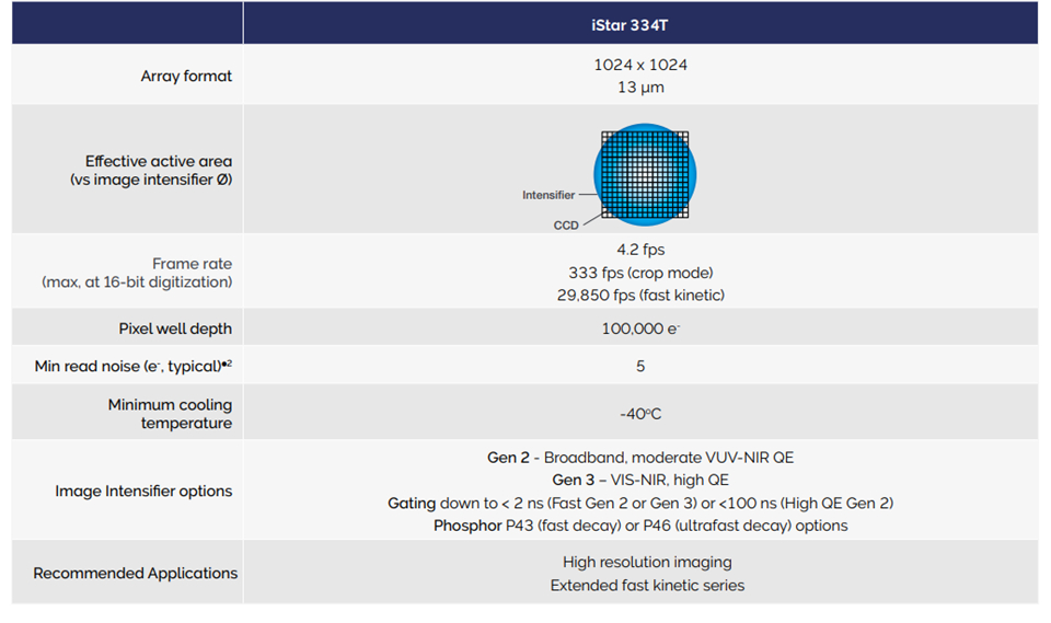 Andor 的 iStar DH334T 快速门控增强型 CCD 系列旨在为高分辨率、纳秒级时间分辨成像提供集成检测解决方案。1024 x 1024 阵列非常适合各种时间分辨应用,包括等离子体分析、安装到 Andor Mechelle 光谱仪时的 LIBS 或快速瞬态现象。