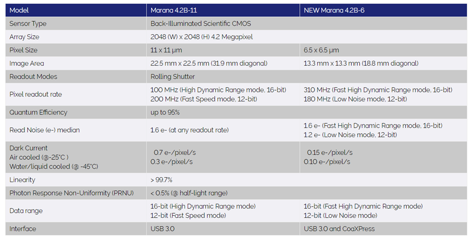 重要的是,Marana sCMOS 在不到 50 毫秒的时间内读取 4.2 兆像素高分辨率阵列,同时保持非常低的读取噪声;比类似分辨率的 CCD 探测器快数百倍。