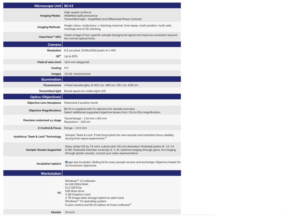 BC43 是一款非常紧凑的装置,具有丰富的功能和优势,使其成为早期研究人员和经验丰富的显微镜工作者的理想显微镜。由于不需要暗室,研究人员可以在与样本相同的工作台上使用共聚焦技术。再加上快速的学习曲线,可以让个人用户和整个实验室变得更加有效率,而不会影响结果。