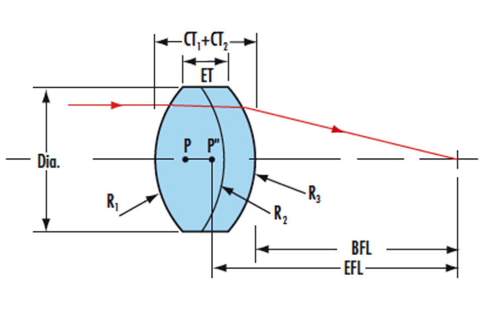 消色差镜片由两个单片镜片通过胶合而成,本品使用电脑优化减少了轴上球差和色差,可选单层MgF2膜层或宽带增透膜,也可选NIR(近红外)消色差双胶合镜片和边缘涂黑版本。所有尺寸单位为mm。