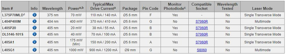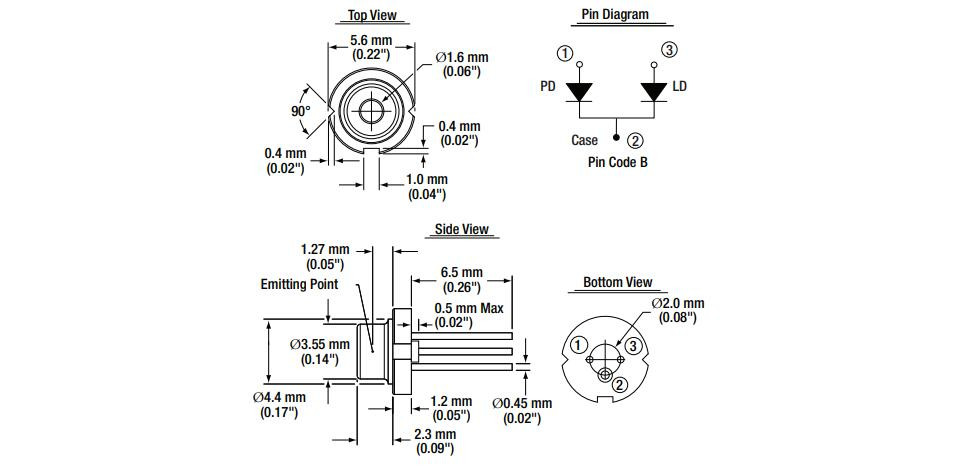 使用我们的激光二极管引脚代号方便选择兼容的安装座