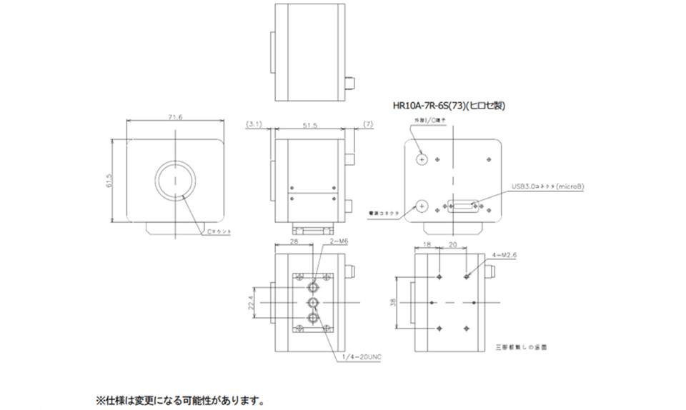 外部 I/O 端子:HR10A-7R-6S(73)(来自 Hirose)