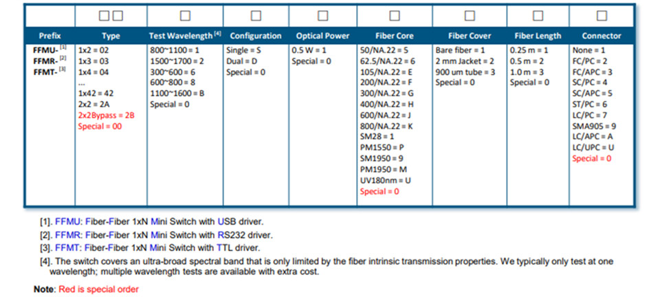 Fiber-Fiber系列 1xN 光开关通过直接耦合一对无涂层光纤来连接光通道。这通过使用微型电机实现。其锁存功能可在驱动信号移除后保持所选光路。紧凑型 FF 系列光开关已通过航天应用认证。Agiltron 独特的设计提供低插入损耗,覆盖 400 至 5000 nm 的超宽光谱波段,并支持从 100um 至 1500um 的各种纤芯尺寸。该光开关是双向传感器和光谱应用的理想选择。