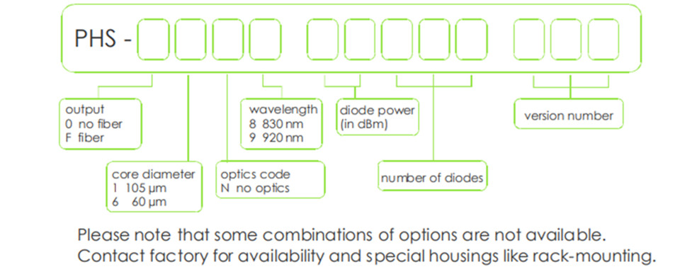 不同的光纤芯径或数值孔径以及激光二极管功率或波长