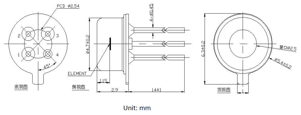 NDIR 气体传感器可通过内部热敏电阻阻值的变化来测量二氧化碳气体浓度。该产品采用 TO-46 金属插座封装,并配有用于二氧化碳气体波段的窄带通滤波器。该传感器集成了热电堆芯片和热敏电阻等电子元件,具有高可靠性和高灵敏度。该传感器专为室内使用而设计。