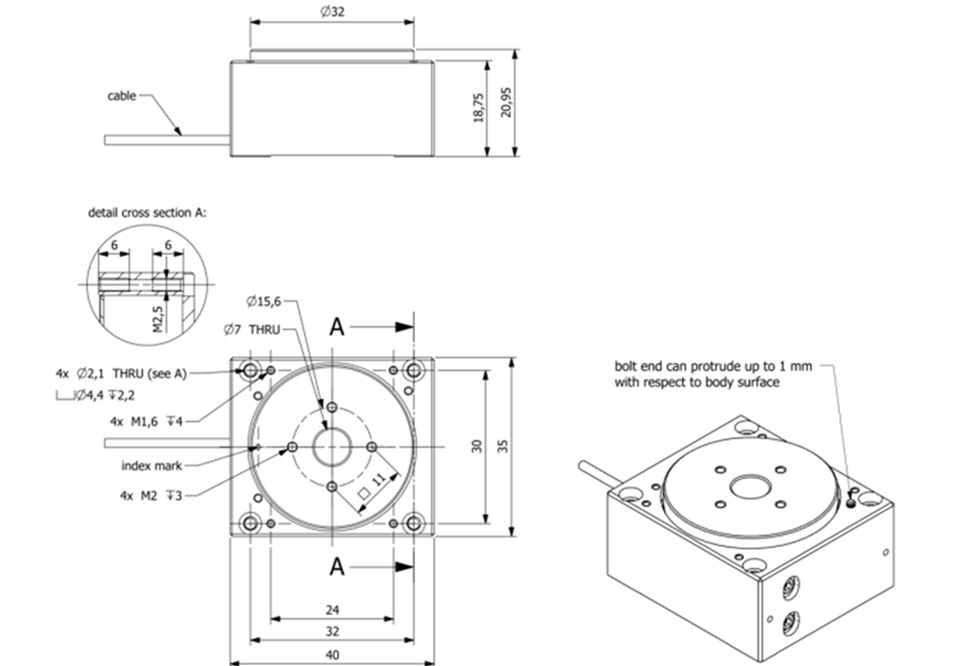 40 x 35 x 21mm ± 0.1 |