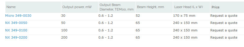 输出功率范围:10至200毫瓦(波长349纳米)