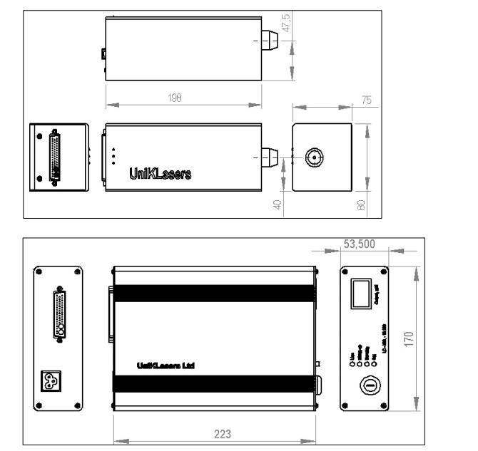 功率高达100mW:激光头尺寸80x75x198mm;控制器尺寸170x53.5x223mm