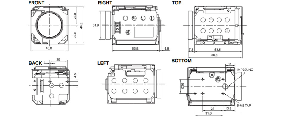 物理和环境参数(组装好的摄像头 + 接口模块)