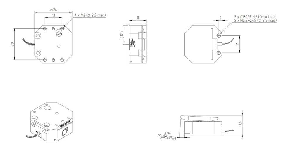 ANGp101为2英寸直径装置提供高分辨率Φ定位功能。与ANGt101组合使用时,ANGp101构成具有共同旋转中心的强大欧拉角动量计的下定位器。其紧凑的占地面积和钛合金主体使其特别适用于紧凑型装置和磁敏感应用场景。该定位器设计工作温度范围为1K至373K,可承受低至1×10-8毫巴(低温/真空/高压)的压力环境。