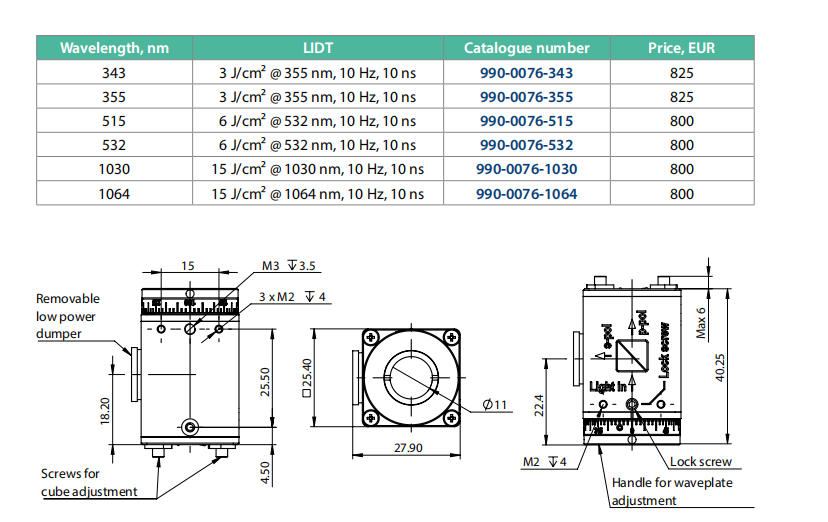 EKSMA可变衰减器990-0076是一款由EKSMA Optics生产的高性能光学器件,主要用于线性偏振激光的功率调节与分束。